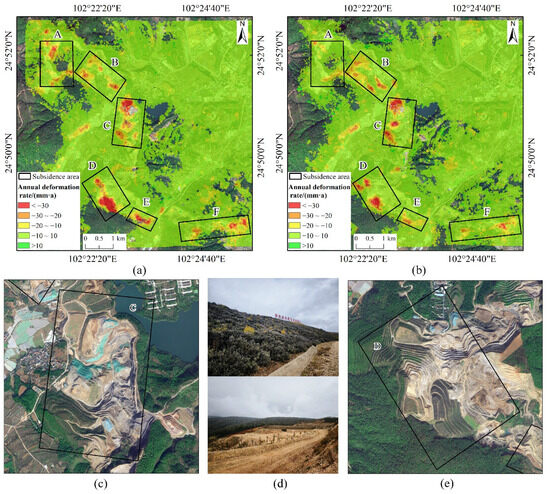 - Liu, J.; Ma, F.; Li, G.; Guo, J.; Wan, Y.; Song, Y. Evolution Assessment of Mining Subsidence Characteristics Using SBAS and PS Interferometry in Sanshandao Gold Mine, China. Remote Sens. 2022, 14, 290. [Google Scholar] [CrossRef]