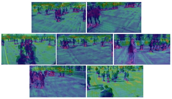 where represents the heatmap, and and are the parameters of the focal loss. The heatmap head is responsible for estimating the centers of pedestrians, ideally producing a value of one when it aligns with the ground truth. Conversely, the box offset and size loss functions are employed to enhance the accuracy of pedestrian locations. The single-view detection branch is based on the CenterNet framework [37], which is widely adopted in many anchor-free methods. For each bounding box i, denotes the corresponding offset, and represents its size. The predicted offset and size are denoted by and , respectively. is a weighting parameter set to 0.1, following the original CenterNet [37].