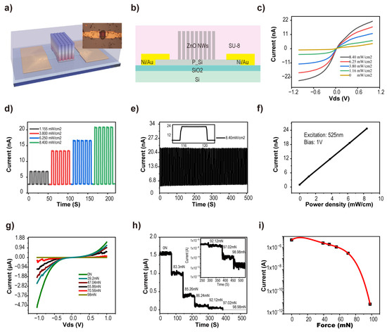 Zhang, L.; Zhou, R.; Ma, W.; Lu, H.; Mo, Y.; Wang, Y.; Bao, R.; Pan, C. Junction Piezotronic Transistor Arrays Based on Patterned ZnO Nanowires for High-Resolution Tactile and Photo Mapping. Sensors 2024, 24, 4775. https://doi.org/10.3390/s24154775