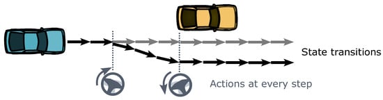 Unlike IL, RL relies on interaction with the driving environment to obtain reward and penalty feedback data needed for learning and training. The ultimate goal of RL algorithms is to learn a planning strategy to maximize the feedback accumulated over time. Common RL planning algorithms include deep Q-networks (DQN) [116], deep deterministic policy gradient (DDPG) [117], and proximal policy optimization (PPO) [118,119]. Although RL algorithms typically require plenty of training steps and computational resources and have low sampling efficiency and slow convergence, they can learn complex planning strategies and continually adapt to changing environments. RL algorithms that utilize driver operation guidance information [120], as well as algorithms that combine IL with RL [121], can improve the learning efficiency of RL algorithms.