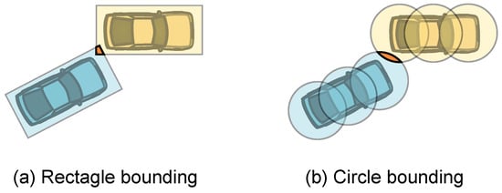 Despite their ability to describe traffic risk and drivers’ subjective perception in various scenarios, their mathematical forms may lead to undefined or sudden changes in the calculation results under specific conditions. For instance, it was found that the TTC and TLC indicators produced unexpected jumps and could not accurately measure the risks in lane deviation conditions [144]. Moreover, these indicators can only describe specific risk information in complex traffic environments, and they have shortcomings in different performance dimensions [145], thus limiting their application scenarios. Some studies have attempted to use combinations of multiple measures to alleviate these issues and achieve better estimates of traffic risk, whose effectiveness is relatively limited, leaving much room for improvement [128]. Reliable measures are lacking for the lateral traffic risk in scenarios such as lane changes or merges and the general risks in more complex traffic environments [129]. Accordingly, some emerging risk assessment measures based on the above-mentioned simple surrogate safety measures like 2D TTC managed to consider lateral and longitudinal collision risks simultaneously [146,147].