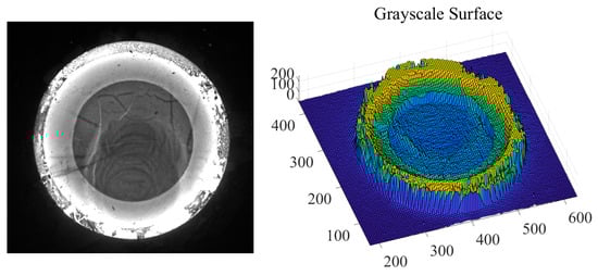 Suppose the resolution of the passive visual image is M0 × N0; the grayscale image of the hot forging can be transformed into a discrete grayscale surface by taking each pixel as coordinates of x and y while taking the grayscale h ∈ [0, 255] of the pixel as a coordinate of z, shown in Figure 1. The grayscale surface Σ can be expressed as