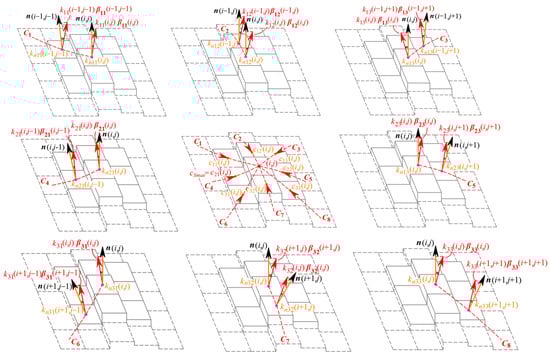 Thus, the G1 continuity parameter at pixel (i, j), namely the surface normal vector direction within the eight-connected neighborhood, is shown in Figure 4.