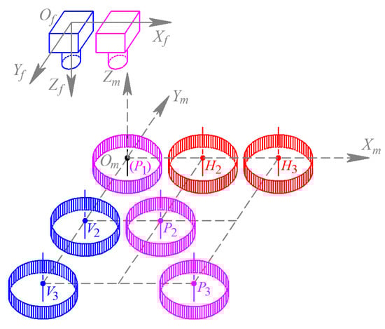 According to the proposed experimental scheme of the dimension and positioning measurement for hot forgings, the test plan for validation of GC Snakes is shown in Figure 25. Establishing a measurement coordinate system {Om; Xm, Ym, Zm} at the initial measurement position of the forging, three measurement positions in the directions of axis Xm and Ym and a general direction are set up, respectively, where Xm = [0, 30, 60]T and Ym = [0, 30, 60]T; thus, nine measurement positions are established to operate geometric parameters measurements for validation experiments. The dimensions and positioning of the forging test part are measured and compared with those by the image segmentation method described in [1], so the performance and stability of the GC Snakes is verified.