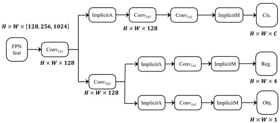 Based on the aforementioned research, this paper draws inspiration from the implicit knowledge learning concept of the YOLOv7-tiny model and proposes an Efficient Decoupled Head with implicit knowledge learning. The algorithm’s structure is illustrated in Figure 5.