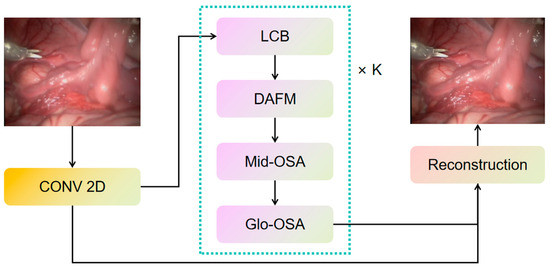 In recent years, despite the advancements made by traditional super-resolution techniques in endoscopic image processing, such as the SRCNN method proposed by Dong et al. [7], these methods typically struggle to handle the complex textures and high levels of noise present in endoscopic images [8]. To address this challenge, emerging deep learning methods, particularly convolutional neural network-based super-resolution techniques, have been developed. For instance, Kim et al. [9] proposed the DRCN method, which learns the residuals between low-resolution and high-resolution images (i.e., the detail differences), rather than directly learning the output images themselves, thus improving training efficiency and output image quality. Liang et al. [10] introduced SwinIR, which leverages a hierarchical Transformer structure to handle features of varying scales in images, enhancing the precision in detail recovery and overall image quality. Lim et al. [11] removed batch normalization layers from traditional residual networks to improve super-resolution performance, showing excellent results in processing images with rich details and textures. Zhang et al. [12] employed a channel attention mechanism to enhance the network’s capability in expressing features, particularly for high-frequency details, significantly boosting the model’s performance through the use of attention mechanisms. Wang et al. [13] introduced the Omni Self-Attention (OSA) and multi-scale interaction scheme to address the limitations of traditional self-attention by promoting comprehensive interaction in both spatial and channel dimensions, significantly enhancing performance while maintaining minimal computational budget and achieving state-of-the-art results in lightweight super-resolution benchmarks.