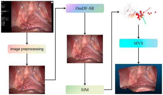 Although traditional image super-resolution techniques have made significant progress in many fields, research on endoscopic image processing remains relatively scarce [3]. These techniques often fail to fully consider the highly textured characteristics of endoscopic images and the need to capture details and control noise when processing these images [4,5]. Furthermore, existing studies on endoscopic 3D reconstruction often rely on the quality of the original images and do not systematically integrate super-resolution processing with 3D modeling technology, limiting the accuracy and practicality of reconstructed models [6].