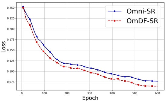 In this study, we conducted a detailed evaluation of the OmDF-SR algorithm, with a particular focus on its performance during the training process and on its effectiveness in the super-resolution processing of endoscopic images. Firstly, we recorded the changes in the loss function during the training process to verify the convergence and stability of the model, and then compared these changes with those of the original algorithm, as shown in Figure 6.