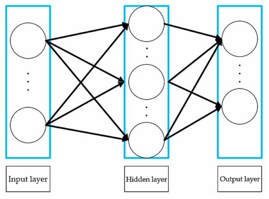 A backpropagation (BP) neural network is a type of artificial neural network widely used in supervised learning [19]. The BP neural network is composed of multiple layers of neurons, including an input layer, hidden layers, and an output layer, adopting a layered structure to facilitate the effective transmission of data between layers. Neurons in each layer are connected and weighted with specific weights to the neurons in the next layer. This structure enables efficient information transmission and transformation during data processing and feature extraction. Its structure is shown in Figure 1. The BP algorithm is widely applied due to its efficiency and practicality in solving nonlinear mapping problems between engineering inputs and outputs [20]. However, the performance of traditional BP neural networks heavily depends on the configuration of multiple hyperparameters, such as learning rate, regularization parameters, and weight initialization. Therefore, the introduction of intelligent optimization algorithms for global searches can determine the optimal initial weight and threshold configurations. This not only significantly enhances the network’s ability to solve complex problems, but also reduces its dependency on random initialization [21].