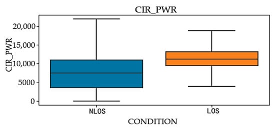 The distribution of these four parameters under different propagation environments is shown in Figure 8 and Figure 9. The analysis of these figures leads to the conclusion that in line-of-sight (LOS) environments, the median values and interquartile ranges of these parameters are significantly higher than those in non-line-of-sight (NLOS) environments.