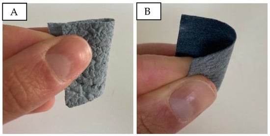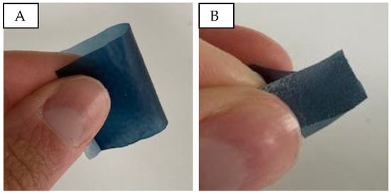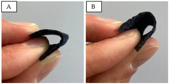 Bending and touch of PVA/micro cellulose/PEDOT:PSS samples. (A): P20C2; (B): P20C16.