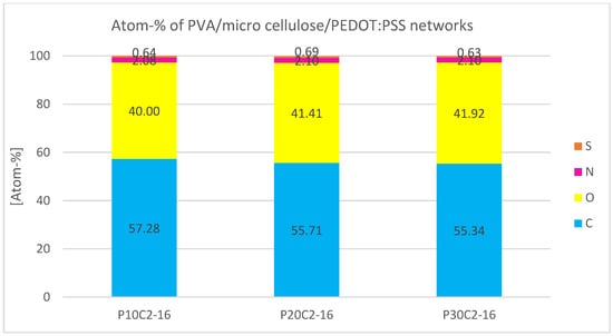Atomic percentage of the elements found during EDS analysis of PVA/micro cellulose/PEDOT:PSS networks.