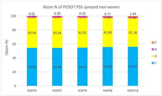 Atomic percentage of the elements found during EDS analysis of PEDOT:PSS-sprayed non-woven samples.