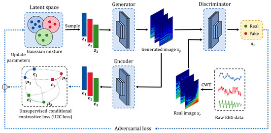 The generator receives the latent vector and generates the corresponding sample . Then, the generated sample is mapped by the encoder to an encoded vector . The cosine similarity between and can be calculated using . The U2C loss is defined as