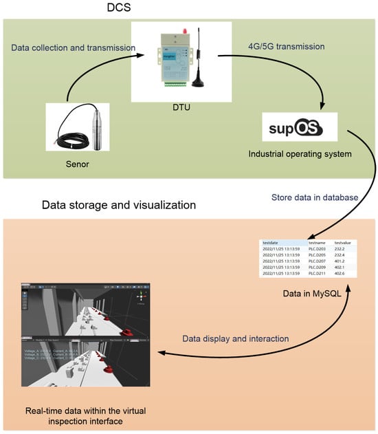 The visualization of real-time data forms a critical aspect of virtual inspections, enabling operators to access and interpret live information within the virtual environment. To facilitate this, a robust data platform is essential. The development of such a platform begins with the construction of a comprehensive data model, which defines the structure and relationships of the collected data. Subsequently, the collected data are stored within a database for efficient management and retrieval.