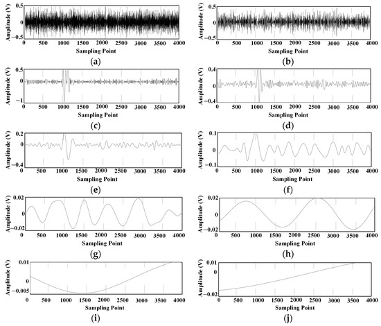 Intrinsic modal components obtained with EMD decomposition: (a) IMF1; (b) IMF2; (c) IMF3; (d) IMF4; (e) IMF5; (f) IMF6; (g) IMF7; (h) IMF8; (i) IMF9; (j) Residual.
