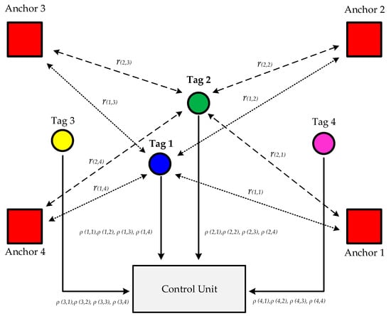 In our prior research, we introduced an Ultra-Wideband (UWB) positioning system that utilized Two-Way Ranging (TWR) techniques and non-line-of-sight (NLOS) mitigation strategies []. However, we observed that the interval required for positioning expanded significantly with an increase in the number of devices to be located. To address this issue, this study implements the Time Difference of Arrival (TDoA) algorithm [], which maintains a consistent positioning interval regardless of the number of devices.