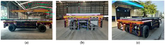 Figure 11 illustrates a comprehensive series of empirical tests conducted on an Electric Automated Guided Vehicle (E-AGV) within an actual factory environment, aimed at evaluating various sensor configurations for enhanced navigation capabilities. The sequence of images captures the systematic steps and settings throughout the testing process: