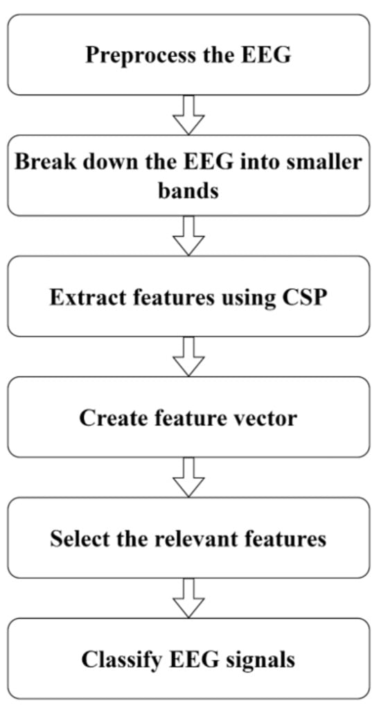 - Lal, U. Neuroscience Meets Data Science: Exploring Common Spatial Pattern (CSP) and Its Applications in Healthcare Analytics. 2023. Available online: https://medium.com/geekculture/common-spatial-pattern-and-its-applications-in-the-healthcare-industry-faa4311dab79#:~:text=CSP%20has%20been%20widely%20used,motor%20intentions%20from%20EEG%20signals (accessed on 7 February 2024).