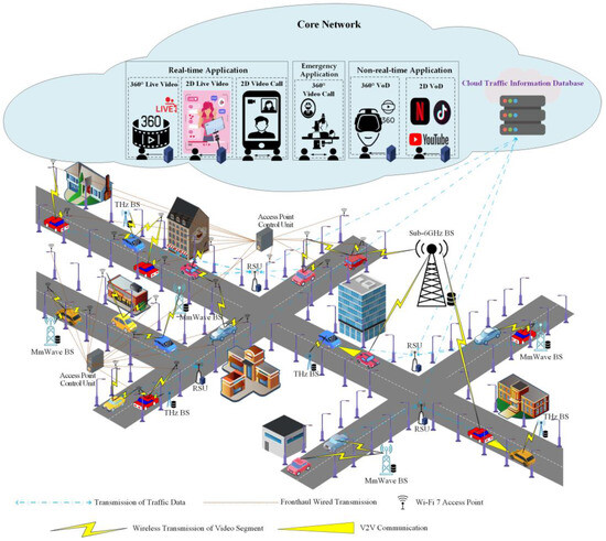 The rise of Vehicle-to-Everything (V2X) communication marks a new era in vehicular interactions, enabling collaboration between vehicles and with infrastructure [6]. As demand for high-resolution and 360° video grows, the V2X network must meet higher performance standards. The upcoming 6G network is set to provide the needed improvements, offering faster, more reliable connections, greater bandwidth, and lower latency [7]. Operating across a wide range of frequencies, including millimeter waves (mmWave), sub-6GHz, terahertz (THz), and visible light [8], 6G will ensure a smooth and efficient multimedia experience in V2X network environments.