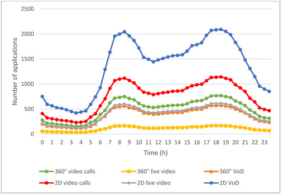 - Non-real-time applications include 2D VoD and 360° VoD.