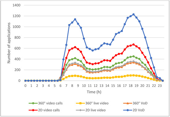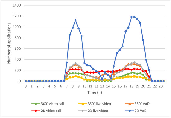 This study categorizes the multimedia applications used by EV passengers into six types: 2D video on demand (VoD), 2D video calls, 2D live video, 360° VoD, 360° video calls, and 360° live video. These applications are further divided into three categories based on their application levels: emergency application, real-time applications, and non-real-time applications.