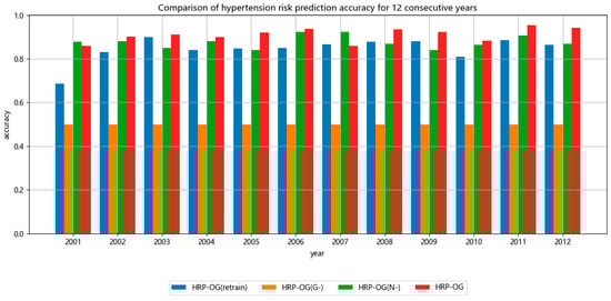 Electronic health records (EHRs) are digital records that contain complete personal and health information of patients along with their medical history []. With the rapid development of EHRs, various medical AI applications based on EHRs have received widespread attention, including disease risk prediction systems [,,], clinical knowledge question answering systems [,,], drug recommendation systems [,], etc. Chronic disease risk prediction based on EHRs is an important way to achieve AI-assisted chronic disease warning, including hypertension risk prediction. Existing studies focus on developing complex models [,], especially deep neural networks, to extract feature information from multivisit EHR data for accurately predicting chronic disease risk. They depend on large-scale and high-quality multivisit EHRs.