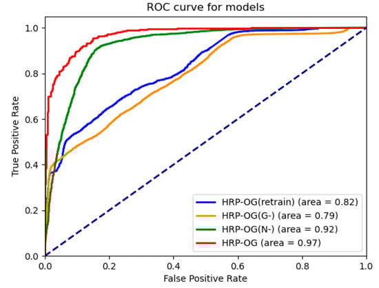Figure 6 shows the ROC curves of the models, illustrating the overall ROC curves of the model and its variants across 12 batches of data. The value for is the highest, reaching 0.97, indicating that our model can effectively capture the characteristics of hypertensive patients in a few-shot and nonstationary environment, achieving accurate predictions for hypertensive patients. The ROC value for is 0.92. Although it is not as high as , it still demonstrates effective prediction capabilities. However, due to the lack of evaluation for new data, its overall performance is weaker. The ROC value for is only 0.82, indicating that it can achieve limited prediction effectiveness, but its accuracy is still constrained by the few-shot size. The ROC value for is the lowest, at only 0.79, which is even lower than that of the retrained model. This also indicates that directly using an old model to train new data is not feasible, as it can lead to overfitting under few-shot conditions and affect prediction accuracy.