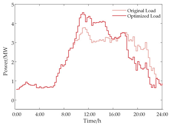 Figure 8 depicts the load power curve before and after optimization, highlighting a notable shift in the load from the low valley period of PV power generation to its peak period. Through the implementation of a load response mechanism, users are effectively encouraged to increase electricity consumption during peak PV output periods. This strategy significantly enhances the park’s self-consumption rate of PV energy. At the same time, it reduces the reliance on electricity purchased from the grid.