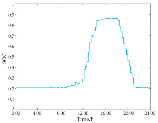 Based on the SOC, initial SOC levels should be adjusted to enhance economic efficiency and reduce energy waste, thereby allowing for greater flexibility for future energy time shifting. Between 12:00 and 16:00, substantial PV energy is used to charge the ESS. Figure 10 indicates that park electricity sales reach their peak during this period. To maximize PV energy consumption and ensure adequate capacity for other applications, adjustments are necessary.