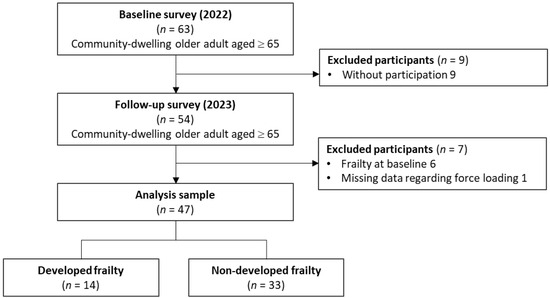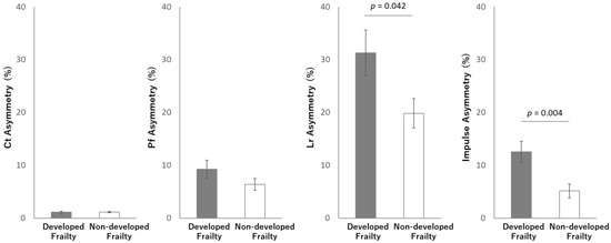 Nakanowatari, T.; Hoshi, M.; Asao, A.; Sone, T.; Kamide, N.; Sakamoto, M.; Shiba, Y. In-Shoe Sensor Measures of Loading Asymmetry during Gait as a Predictor of Frailty Development in Community-Dwelling Older Adults. Sensors 2024, 24, 5054. https://doi.org/10.3390/s24155054