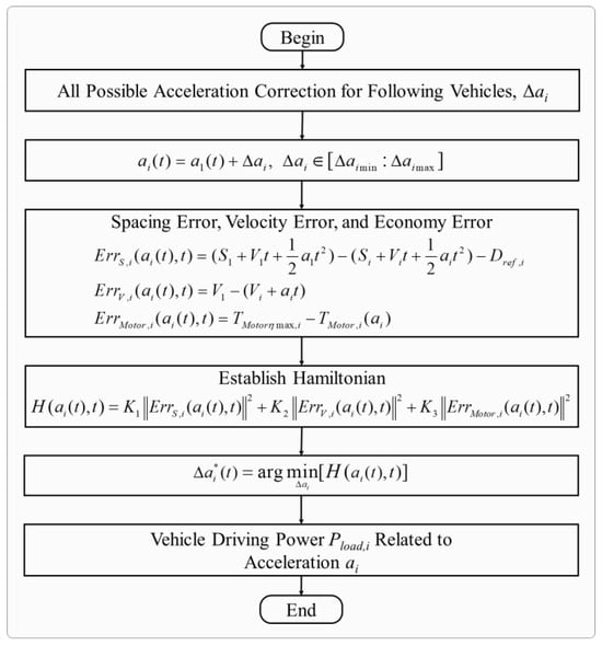 As a method for solving optimal control problems under a nonlinear system of ordinary differential equations, Pontryagin’s minimum principle (PMP) [19] allows the solving of the optimal control inputs to minimize the objective function and Hamiltonian function under given constraints. The mathematical equation of a control system can be expressed as: