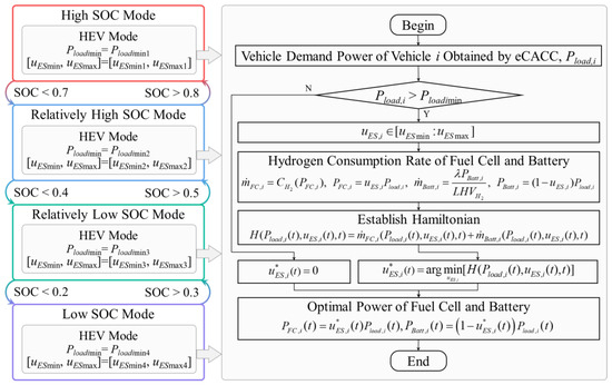 In order to reduce the energy consumption of power components and thereby further improve the economy of the FCEV platoon, optimal control for multiple energy sources is necessary. In the bottom-level distributed controllers for each FCEV individual, the proposed EMS optimizes the operation of multiple energy sources by analyzing reference datasets so as to further improve economy, and the implementation is shown in Figure 7.