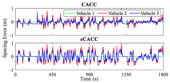 where , , and are the reference displacement, reference spacing, and velocity of following vehicle , respectively. is the displacement of leading vehicle. is the fixed reference spacing, and is the time headway.