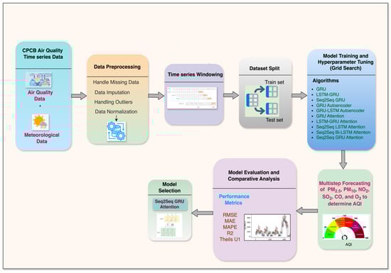 The impact of air pollution on public health and the environment is substantial. Therefore, accurate multi-step air quality forecasting is crucial for decision making, early warnings, and strategies to address pollution concerns and maintain safe AQI levels in smart cities. Air quality forecasting involves estimating pollutant concentrations for future time steps based on historical air quality data. However, accurate multi-step forecasting is challenging due to the influence of environmental, meteorological, and various other conditions [41] on pollutant patterns. The common approaches for air quality forecasting include statistical and data-driven methods, such as Machine Learning (ML) and Deep Learning. Although traditional statistical approaches like Multiple Linear Regression (MLR), Moving Average (MA), Autoregressive (AR), Autoregressive Moving Average (ARMA), and Autoregressive Integrated Moving Average (ARIMA) [42,43] are suitable for short-term air quality forecasting, their intrinsic linearity assumptions limit their ability to solve nonlinear problems, leading to high errors and poor model stability. Meanwhile, AI gained importance due to its capability to handle non-linearity in time series data. The studies in [44,45,46] utilized AI-based ML techniques like Support Vector Regression (SVR), Gradient Boost Regressor (GBR), Adaboost, and Stacking Ensemble to enhance forecasting accuracy. Although ML approaches have shown promising results, they fail to capture complex time series patterns and long-term dependencies in time series data affecting the forecast accuracy.