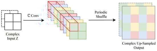 The up-sampling layer, a ubiquitous component in many neural network architectures, typically employs interpolation techniques to resize input data to the desired dimensions. This technique might be successful if we resize the real and imaginary parts, separately. However, it fails to improve the reconstruction of the complex ultrasound signals. Our objective is to refine the reconstruction process at each step, which necessitates a more sophisticated approach. The proposed complex up-sampling layer (Up-sampling) (Figure 2) is responsible for learning an up-sampling transformation based on periodic shuffling of the complex features from the complex convolution rather than relying on interpolation. This layer produces an up-sampled output that is not interpolated but rather learned from the rearranged complex features.