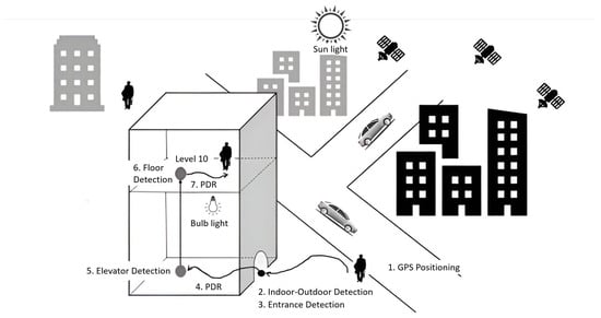 In recent years, indoor–outdoor detection (IOD) has experienced significant growth due to its application in positioning technologies and environmental change detection using multimodal smartphone sensors. IOD plays a crucial role in enhancing the deployment of location-based services in embedded systems characterized by low power consumption and the use of artificial intelligence on the device. These advances offer substantial economic and technical benefits, particularly in the development of integrated indoor–outdoor GPS systems, as illustrated in Figure 1 [1,2,3].