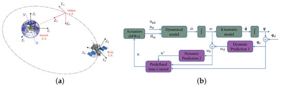 The primary objective of this study is to design a robust control law (as illustrated in Figure 1b), ensuring that both the attitude tracking error and the angular velocity error converge asymptotically to zero under disturbance-free conditions, or within a small bounded region when subject to external disturbances. Critically, the predefined stabilization time is designed to be invariant with respect to the initial system states, affirming the control’s robustness across varying operational scenarios.