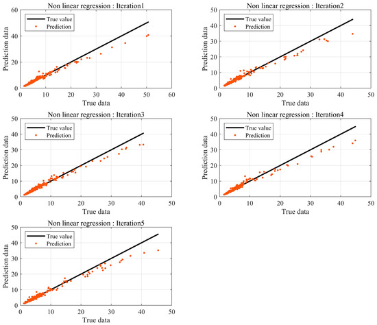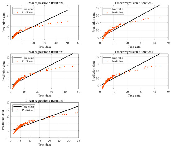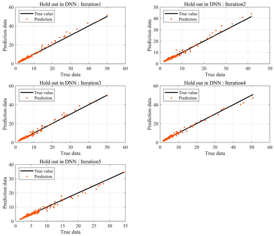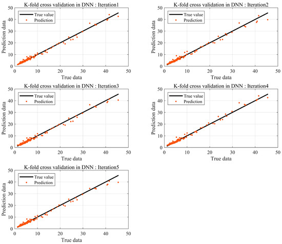 In machine learning, the number of data has a significant impact on the performance of the model, provided the model avoids overfitting and underfitting problems. BSR experiments are conducted at the final phase of development, and not all products are tested. Consequently, it is challenging to obtain substantial data through experiments. Thus, prediction models are needed to achieve robust interpretation accuracy with a small amount of data. Data augmentation based on data transformations is a common method for acquiring data. However, they occur in data augmentation and must be used appropriately according to the purpose and context. Therefore, in this study, K-fold cross-validation was utilized, which can create stable models using a small amount of data without distorting the data. The results are shown in Figure 10.