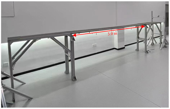 The vision system consists of a mini SLR camera with a lens, a tripod, and a computer. The camera is a Nikon Z30 (Nikon Corporation, Tokyo, Japan) with a CMOS sensor and a resolution of 1920 × 1080. The lens is an AF-S Nikkor 18–140 mm (Nikon Corporation, Tokyo, Japan). The computer is equipped with an Intel(R) Core i5-1135G7 CPU at 2.40 GHz and 16.0 GB of RAM (Intel, Santa Clara, CA, USA). In the experiments, the camera is fixed on the tripod at the same height as the marker, and the optical axis is set to be horizontal. This step is to ensure that the optical axis is perpendicular to the marker’s plane. The LDS used in the experiments is BOJKE BLG-85N-485 (BOJKE, Dongguan, China) with a measuring precision of 10 μm. More detailed parameters are shown in Table 1.