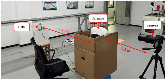 The experiments were conducted in Nanjing, China, at an altitude of approximately 28 m. The time was December 2023, and the indoor temperature was 15 °C when the furnace was off. After the furnace was heated at 1200 W for five minutes, the temperature at the light path above it was 60 °C.