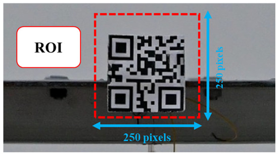 In this section, the designed vision-based displacement monitoring technique is validated through a dynamic test without heat haze. The bridge model is excited by an initial displacement in the Y direction and then is allowed to vibrate freely. The camera records the video of the vibrating target while the LDS collects the displacement data. The video is then transmitted to the computer for processing. The displacements obtained by the vision system are compared to those extracted by the LDS. The region of interest (ROI) is set to be a 250 × 250 pixel area enclosing the square pattern, as shown in Figure 7.