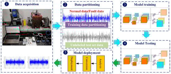 - Step 4: Online testing of model accuracy. Unknown test set data is inputted into the lightweight model trained in the previous step for fault diagnosis and classification, and the accuracy of diagnostic testing is calculated.