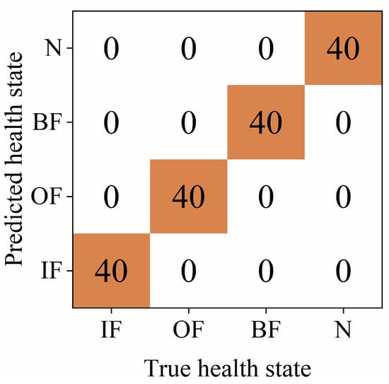 The experimental results are shown in Figure 4 and Figure 5. As can be seen from the results, the four-condition data are classified clearly. The confusion matrix results also demonstrate the good performance of the proposed model.