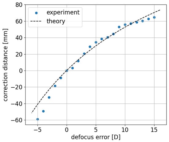 Figure 6) is shown to cover the range of −5 D to +15 D. The experimentally measured relationship of the lens diopter and the required translation distance are similar to the usage of the Badal lens in a Badal optometer [