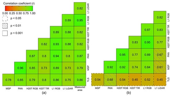 | Zenmuse L1 | RGB | 0.07 | 0.69 | 0.41 a,b | 0.18 | 42.93 |
