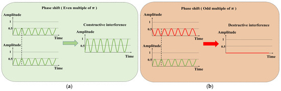 The principle of the Michelson-type all-optical modulator: (a) phase shift (even multiple of π); (b) phase shift (odd multiple of π).