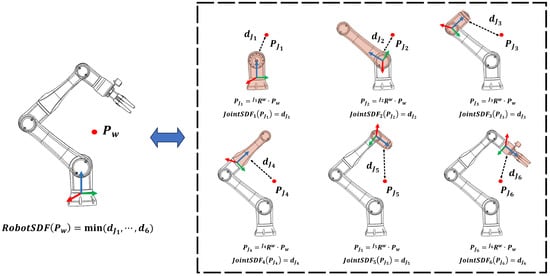 Eventually, the RobotSDF regarding the specific robotic posture Q can be calculated as: