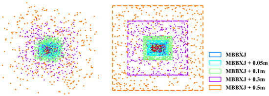 The sampling space for each joint is divided into five regions. The first region is the inside space of MBBXJ. The next four regions diffuse outward from the MBBXJ surface by distances of 0.05 m, 0.1 m, 0.3 m, and 0.5 m, separately.