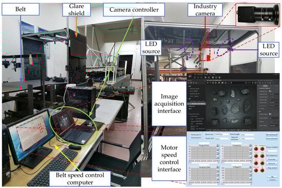 The intelligentization of coal mines is the core technical requirement to support the high-quality development of the coal industry. As the key equipment of the main coal transportation system, the intelligentization of belt conveyors is required to guarantee the safe and efficient transportation of coal, which is of great significance to improving the safety level of coal mines and ensuring the stable supply of coal [1,2]. In the process of the continuous high-strength operation of coal transportation in the complex and harsh environment of coal mines, the materials conveyed by conveyor belts are often mixed with sharp foreign objects, such as gangues and iron wares, which easily cause local damage to conveyor belts, resulting in safety accidents. If foreign objects such as gangues and iron wares can be identified and sorted before the appearance of major safety hazards, the continuous, stable, green, and efficient production of coal mines will undoubtedly be guaranteed, thus advancing the intelligent development of coal mines [3,4].